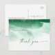 Cette carte postale moderne vert aquarelle vous remercie est parfaite pour un mariage contemporain élégant. La collection design minimaliste, classique et élégante présente de simples touches de peinture couleur à l'eau dans de jolis tons bijoux. Personnalisez le dos de la carte postale avec vos noms, votre adresse de retour et un message de remerciement. Sinon, laissez la section de modèle de message de remerciement vide pour écrire à la main une note personnalisée réfléchie sur chaque carte après leur arrivée. Ces cartes peuvent être utilisées pour un mariage, une douche nuptiale ou tout événement spécial.