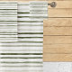 Aquarelles modernes de rayures vertes serviettes de bain dressées sur un arrière - plan blanc. Visitez notre boutique pour voir un rideau de douche assorti.