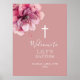 Ce panneau d'accueil moderne et élégant rose couleur aquarelle florale de baptême peut être personnalisé avec vos informations en typographie élégante. Conçu par Thisisnotme©