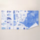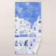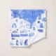 Une aquarelle bleue et blanche du village d'Oia sur l'île grecque de Santorin.