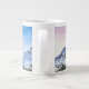 Cette belle tasse à café présente une aquarelle de la montagne au crépuscule quand le ciel est bleu et rose et violet. Avec la phrase "les montagnes appellent..." cette tasse vous mènera vers les hauteurs paisibles de ces sommets.