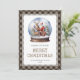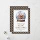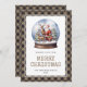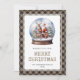 Carte de Noël personnalisée à base de buffle et comportant un globe de neige avec le Père Noël et des rennes. Personnalisez facilement cette carte de Noël aquarelle avec votre nom de famille et l'année.