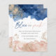 Une élégante aquarelle bleu et rose Baby Gender Reveal Party Invitation. Le texte de typographie est bleu ou rose ? Sur un arrière - plan blanc, l'aquarelle bleue et rose est décorée de éclaboussures d'or et de poussière. Personnalisez en ajoutant tous les détails de votre événement à l'avant et à l'arrière.