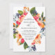 Un faire-part de mariage floral personnalisable avec des fleurs d'aquarelle, des feuillages et des oranges. Ce faire-part de mariage botanique est parfait pour les mariages du printemps et de l'été.