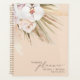Un joli planificateur élégant pour planifier votre mariage avec un large arrangement de pampas aquarelle feuilles, orchidées et roses sur un arrière - plan roux. "Planner" est dans la police de calligraphie moderne. Personnalisez avec vos noms et votre année.