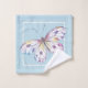 Un motif simple bleu clair ondulé avec de belles aquarelles violettes et bleues papillons. Donnez à votre salle de bain un look de printemps frais et simple élégance avec rideau de douche et accessoires assortis.