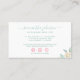 D'élégants cartes de visite fleuris arborent votre nom et nom d'entreprise ou titre dans un mélange chic d'un bloc et d'écriture manuscrite, surmonté d'un bouquet d'aquarelle de fleurs pastel et de verdure. Ajoutez vos coordonnées au verso en vert menthe avec un petit arrangement floral dans le coin inférieur.