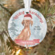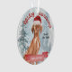 Boldog Karácsonyt est "Joyeux Noël" en hongrois, et ce qui est plus approprié que cela pour votre Vizsla préférée! Une race hongroise bien-aimée de chien, habillée d'un chapeau de Père Noël. Renverse à l'arrière - plan de Noël enneigé et un pin. Customisez avec un message ou un nom personnalisé.