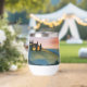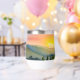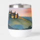 Vin de voyage artistique tumbler présente une scène d'aquarelle numérique générée par l'IA d'un beau coucher de soleil sur des collines ondoyantes dans une vallée en Toscane, Italie.