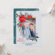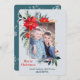 Votre photo occupe le centre de la scène avec un joli cadre de bouquet poinsettia rouge aquarelle sur le devant de cette carte de vacances. En bas se trouve votre texte personnalisé en rouge et turquoise foncé. Le dos de la carte est bleu turquoise, avec une couverture de flocon blanc. Une élégance simple pour votre photo de famille !