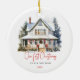 Ce magnifique ornement en céramique commémore le moment "Notre premier Noël dans notre nouvelle maison" de vos vies. Avec son illustration charmante d'une confortable maison enneigée ornée de décorations festives, c'est l'endroit idéal pour fêter une étape importante. Personnalisez votre décor de vacances avec cet ornement élégant et intemporel, et chérissez la mémoire de votre premier Noël dans votre nouvel espace pour les années à venir.