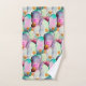Joli motif d'aquarelle rose. violet, turquoise, vert et jaune représentant des cactus de poire stylisés en fleur de jaune. #désert #succulents.