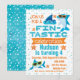 Vous cherchez un requin ou une invitation à l'anniversaire fin? Ce design peut être ce que vous recherchez. Le design comprend deux requins, une bannière, quelques étoiles de mer et diverses bulles sur un arrière - plan blanc. Le dos de l'invitation est un lavage à l'aquarelle avec un motif aléatoire blanc spotty. Pour plus de designs sur ce thème, veuillez visiter le magasin. L'invitation d'anniversaire de ce garçon de requin fin en plastique est prête à être personnalisée.