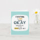 Cette carte d'accueil très rapide présente une forme de carré blanc et arrondi propre avec une bordure bleu clair apaisante. À l'intérieur, vous trouverez un mélange de styles et de couleurs de police créant une citation motivante qui dit "TOUT" en caractères multicolores gras et vibrants en haut. En-dessous, "is GOING" est écrit en plus petit texte noir et jaune, suivi de "TO be" en petit texte noir. La phrase se termine par un "OKAY" rassurant en grandes lettres bleues foncées, et "(et si ce n'est pas le cas, je serai à droite de votre côté)" en petit texte noir, avec "DROITE" souligné en jaune joyeux. Cette carte exhale la positivité et le confort, parfait pour envoyer des voeux et du soutien. 🌟 🌷