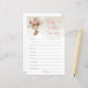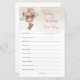 Promenez-vous dans un voyage passionnant avec la carte de jeu Chers Bébés Voeux couleur rose, marron et ivoire conçue pour un baby shower fille avec le thème "We Can Bearly Wait". Cette carte fantaisiste et aventureuse invitation les invités à partager leurs souhaits sincères pour le nouveau bébé, mélangeant des couleurs douces avec une touche de charme ludique. Alors que vous fêtez l'arrivée imminente, laissez les souhaits des invités pour la petite donner le ton pour un événement magique et inoubliable, plein de joie et d'anticipation pour l'aventure passionnante à venir. Contactez-moi pour les articles correspondants ou pour la personnalisation, Bébé Rose Blush ©