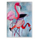 Beau aquarelle colorée de la peinture originale de Sacha Grossel de flamants roses et orange contre un arrière - plan bleu ciel. Joli art flamand.