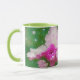 Cette jolie tasse florale présente ma photo originale de fleurs roses, traitée avec une technique d'aquarelle pour un style illustré et peint avec une touche de fantaisie. Il a une couleur verte à l'intérieur et sur la poignée, qui peut être changée si désiré. Ce sont des tasses de 11 onces, juste la taille idéale pour votre café ou thé maison - ou même du chocolat chaud! Il ferait un grand cadeau et vous pouvez mettre des paquets de café, des sachets de thé ou du chocolat chaud à l'intérieur. Une autre idée de cadeau est de mettre un petit plante dedans pour le rendre spécial pour votre être cher.