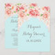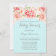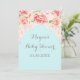 Invitations personnalisées de douche bébé en bleu pastel avec motif d'aquarelle vintage rose clair.