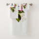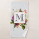 Serviette de bain joliment aquarellée. Un agencement fleuri de nombreuses variétés de fleurs aux couleurs rouge, rose et blanc, et beaucoup de feuillage vert feuillu. Un cadre superposé avec une bordure en feuille d'or. Design élégant et élégant. Personnalisez avec une seule lettre monogramme.