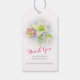 Mariage merci cartes cadeaux avec un joli art d'aquarelle hellebores du printemps. Mariage étiquettes cadeaux peuvent être personnalisées avec le nom de votre mariée et mariée sur un côté et un message de remerciement sur l'inverse. Parfait pour ajouter une touche personnalisée à vos cadeaux de remerciement de mariage. L'étiquette cadeau présente une aquarelle lâche de l'art à ressort en rose rouge, vert, blanc, bleu et gris. Correspond à une gamme d'autres produits mariages de la gamme d'ailes d'aquarelle. © Unique aquarelle art et design par Sarah Trett.