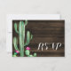 Un cactus aquarelle et une carte de réponse RSVP en bois de grange.
