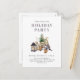 Cette carte postale confortable et rustique d'invitation à la fête de vacances présente une aquarelle illustrant un mignon gnome féminin assis à côté d'un arbre de Noël miniature, un panier de billes de bouleau et quelques bougies. Les mots "Fête" apparaissent dans des lettres serif grises qui se coordonnent avec l'art. Ajoutez l'heure de la fête, l'emplacement et d'autres détails ci-dessous, et votre adresse de retour au verso.