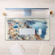 Découvrez le charme des îles grecques directement sur votre espace de travail avec notre 'Santorini Greece watercolor Blue White Desk Mat.' Ce somptueux tapis de bureau apporte la beauté iconique de Santorin à votre bureau, avec un élégant croquis des célèbres églises à dômes bleus de l'île et des bâtiments blanchis à la chaux dans le style eau. L'oeuvre, rendue dans des tons délicats bleu et blanc, capte l'essence du paradis égéen dans un style sophistiqué et minimaliste.