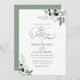 faire-part de mariage vert sauge, aquarelle verdure feuillage et élégant écriture de lettrage noir. Customisez le texte et les couleurs.