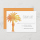 DE LA COLLECTION MARIAGE SERENE PALMS : Carte de réponse Mariage — Une Silhouette de palmier d'aquarelle pour votre mariage tropical. Aquarelles utilisant des oranges chaudes et des jaunes pour créer cette belle silhouette d'un seul palmier. Si vous désirez une couleur différente, envoyez un courriel à paula@labellarue.com avant de passer une commande et un nouveau modèle sera créé pour vous. Assurez-vous de choisir votre carte préférée. Sentiment serait beau pour ce design puisqu'il a cette belle texture de papier aquarelle mais solide.
