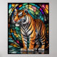 Ce tigre très coloré est un style aquarelle de vitrail sur un arrière - plan noir. Le ratio d'aspect est de 4:5. Il a été conçu pour être imprimé en 4"×5", 8"x10", ou 16"×20", 24"×30"
