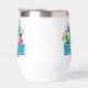 Design mariage coloré en verre de vin thermique avec un cadre turquoise horizontal bordé de fleurs d'hibiscus aquarelle, un toucan audacieux et feuilles de palmiers luxuriants. Ajoutez les noms de la mariée et du marié et la date du mariage à l'aide du modèle fourni. Ce design tropical est parfait pour les jardins d'été, la plage et les mariages tropicaux, anniversaires et autres événements spéciaux. Recherchez ID577 pour voir les produits correspondants.