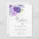 Invitations de mariage à l'aquarelle fleurie avec couleur de l'année 2018 ultra violet aux tons violet et vert sauge. Les fleurs comprennent hydrangée, lavande, pivoines et roses.