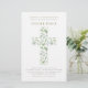 Famille Invitation et amis à votre événement avec cette invitation personnalisable de bénédiction bébé. Il dispose d'une croix de verdure assortie d'une motif de verdure. Personnalisez cette élégante invitation de bénédiction de bébé en ajoutant vos propres textes. Cette invitation à la bénédiction des bébés verdoyante est parfaite pour les bénédictions des bébés du printemps et de l'hiver neutres selon le sexe.