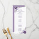 Cette carte de menu présente des fleurs d'aquarelle violet clair et foncé, des éléments floraux feuille et argentés. La copie est entièrement modifiable. Vous pouvez également modifier la police. Cette carte a des invitations, enveloppes, étiquettes et timbres correspondants. Faites coordonner tous vos articles mariages !