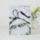 Un modèle de mode aquarelle peint à la main portant une robe de Noël et des gants noirs sur une carte de vacances design