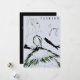 Un modèle de mode aquarelle peint à la main portant une robe de Noël et des gants noirs sur une carte de vacances design