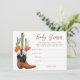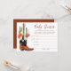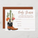 Ajoutez de l'amusement et de l'anticipation à votre baby shower avec ces cartes de jeu de baby shower de démarrage de cowboy. Ces cartes, illustrées d'une charmante aquarelle d'une botte de cowboy remplie de cactus et de fleurs de cactus orange et rose, correspondent parfaitement à votre célébration à thème cowboy ou cowgirl. Les clients peuvent prédire la date de naissance, l'heure, le poids et la longueur du bébé, faisant du jeu une activité attrayante pour tous. Le script brun et fantaisiste améliore le style du Sud-Ouest, et les cartes complétées deviennent un gardien chéri pour la future mère. Ces cartes de jeu sont un ajout charmant et élégant à vos festivités de baby shower!