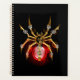 Araignée mécanique à vapeur avec or, engrenages en laiton et lampe en verre rouge sur un arrière - plan noir. Style Steampunk.