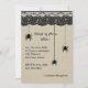 Des araignées éffrayantes sont accrochées à une bordure dentée sur cette invitation à "déposer pour une bouchée", et un arrière - plan couleur parchemin. Au fond de cette invitation, des chauves-souris entourent un élégant lustre en cristal.