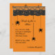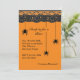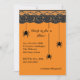 Les araignées éffrayantes pendent d'une frontière de dentelle à cette invitation de partie de costume de Halloween "de se laisser tomber dedans pour une morsure". Le dos est décoré des battes en vol autour d'un lustre mystérieux. L'enveloppe coordonnée est également disponible.