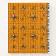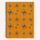 Un arrière - plan orange vif crée une base parfaitement inspirée de l'Halloween pour un motif répétitif de web noir rampant avec des araignées. Ces araignées, modelées sur la fausse veuve, présentent un crâne blanc vif sur leur abdomen et d'autres marques blanches sur leur corps et leurs jambes.