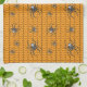Un arrière - plan orange vif crée une base parfaitement inspirée de l'Halloween pour un motif répétitif de web noir rampant avec des araignées. Ces araignées, modelées sur la fausse veuve, présentent un crâne blanc vif sur leur abdomen et d'autres marques blanches sur leur corps et leurs jambes.