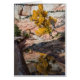 Un Cottonwood est inondé de rouge, de jaune et d'orange, se reflétant dans une piscine calme au-dessous de hautes falaises de sable en pierre dans le parc national de Sion