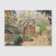 Arbre À Plum Fleurissant, Eragny. Camille Pissarro. Un beau paysage printanier aux couleurs chaudes. Le jardin près de la maison est entouré d'une haute clôture. Au centre se trouve un arbre à fleurs. Une femme marche le long de la route. Reproduction d'oeuvres d'art célèbres dans le domaine public.