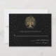Cartes de réponse d'invitation de mariage avec arbre à tourbillon doré sur fond noir