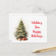 Jolie photo vintage d'un sapin de Noël avec des cadeaux, est présentée sur cette carte postale pour les Fêtes. Avec un message, "Wishing You Happy Holidays", sur le devant de la carte postale. Le dos est vide pour écrire votre propre message personnel. Une carte postale pour rester en contact avec sa famille et ses amis à Noël !