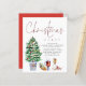 Arbre Boissons Script Noël Invitation de fête de Noël. Un prix économique PETIT 4,5 po x 5,6 po alternatif. Disponible dans un STOCK CARTE SEMI GLOSS 110 lb qui est l'option par défaut (recommandé pour les invitations), OU un STOCK PAPIER THINNER SATIN FINISH 80 lb (idéal pour les boîtiers). Les enveloppes sont en option et légèrement plus grandes que la taille de la carte. Un arbre de Noël et des boissons festives à gauche avec les détails à droite, et l'en-tête principal dans un script de style manuscrit. Personnalisez facilement le reste du texte à vos propres détails.
