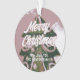 Arbre de Noël Arbre vert Artiste Rose Joyeux Script Ornement. Design de vacances avec un arbre de Noël artistique décoré et un script blanc tendance.
