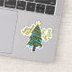 Un autocollant Joyeux Noël et un joyeux arbre de Noël du Nouvel An avec des ornements.