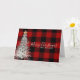 Pin de Noël blanc avec cloches d'or et oiseau portant foulard d'hiver sur plaid de bûcheron rouge et noir pour Joyeux Noël et heureux nouvel an